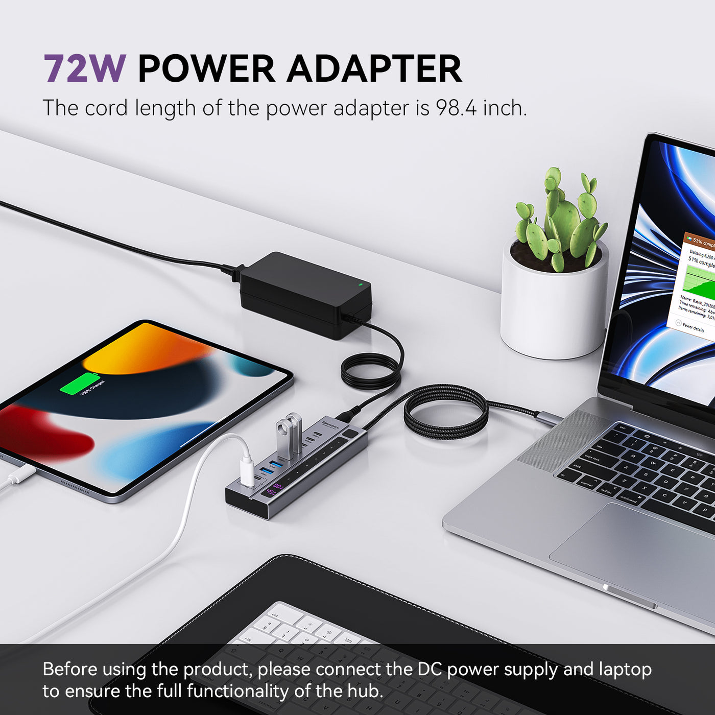 Minisopuru Powered USB C Hub with 72W Power Adapter
