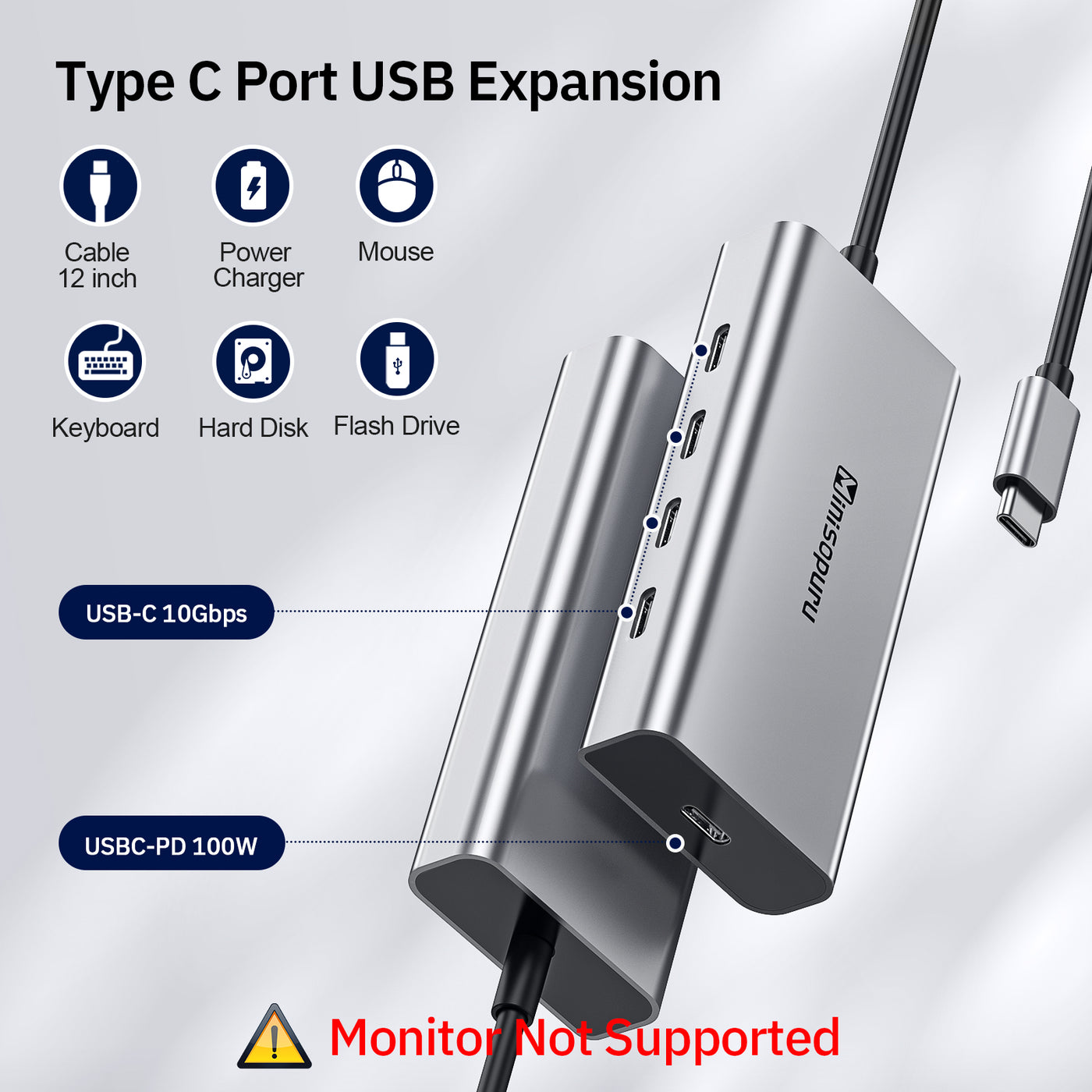 • ⚡【10Gbps Superspeed Transmission】: USB C Hub expands a single Type-c port into 4 USB C ports up to 10Gbps, transferring or backing up your data easily and quickly. Complete work efficiently in seconds, Minisopuru USB C to USB c Hub is compatible with USB2.0. Please note that to achieve 10Gbps speed, you need to configure the corresponding data cable.