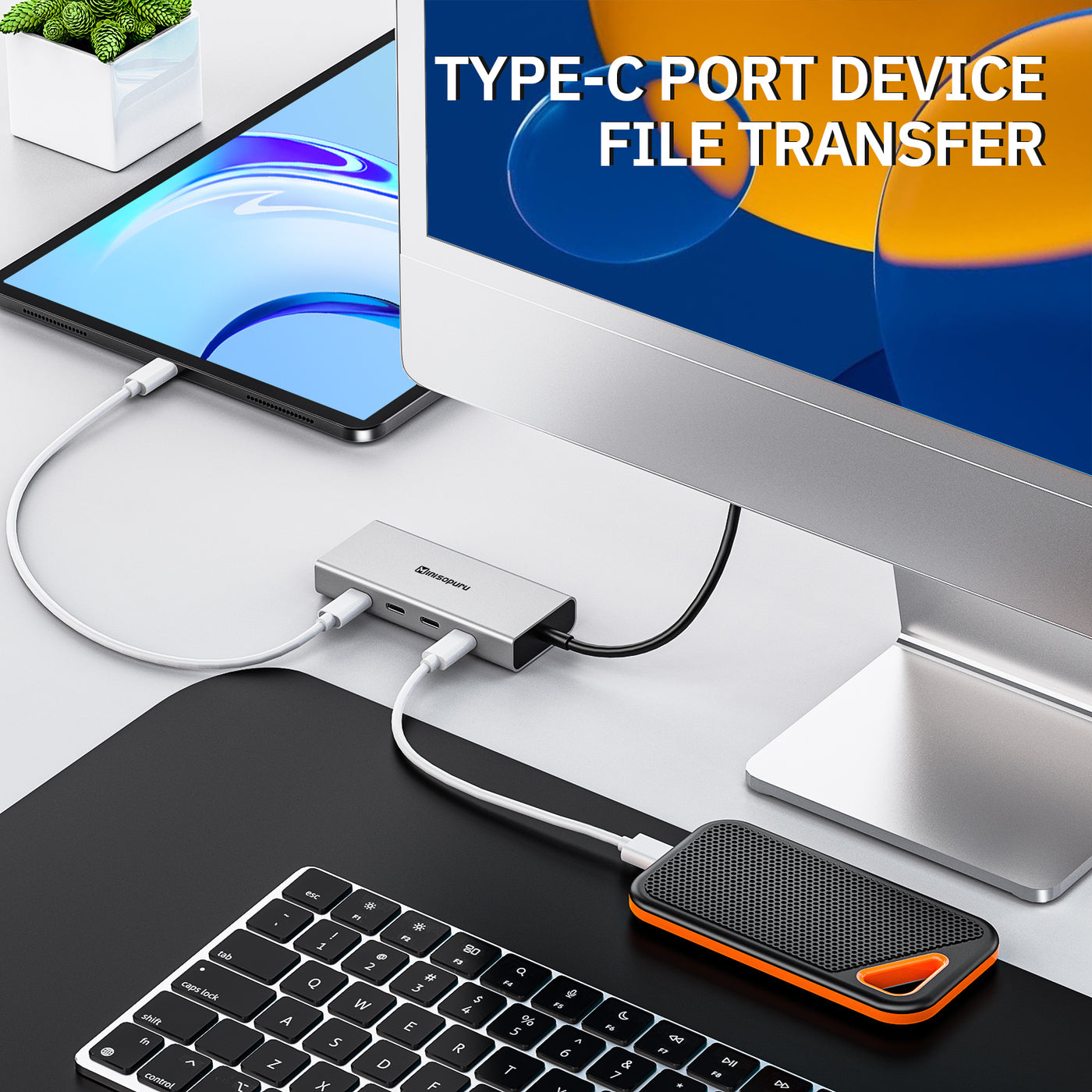 • ⚡【Extra 4 USB C Data Ports】: Equipped with 4 USB3.2 Gen1 data ports, the Minisopuru USB C Hub can easily connect multiple USB C devices to the laptop and quickly transfer files. A single USB C port connects more Type-C external devices including hard drives, flash drives, mice, etc.