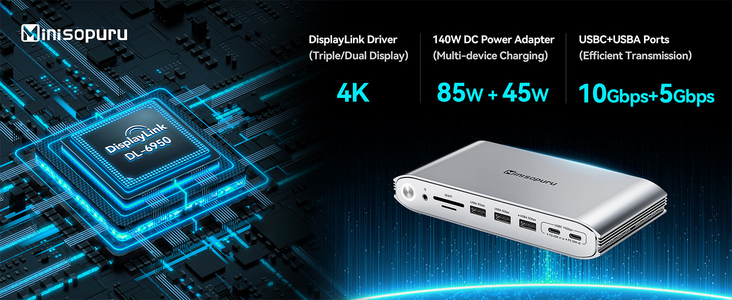 Minisopuru Upgrade Minisopuru DisplayLink Docking Station Triple Monitor with 140W Power Adapter|MD6950D
