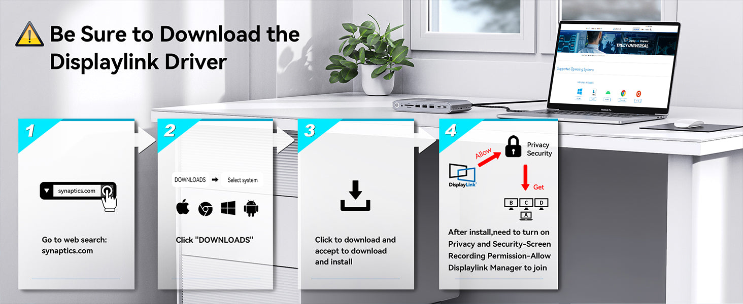 ★Note: Must install the DisplayLink driver on your laptop to ensure proper all media display functionality.